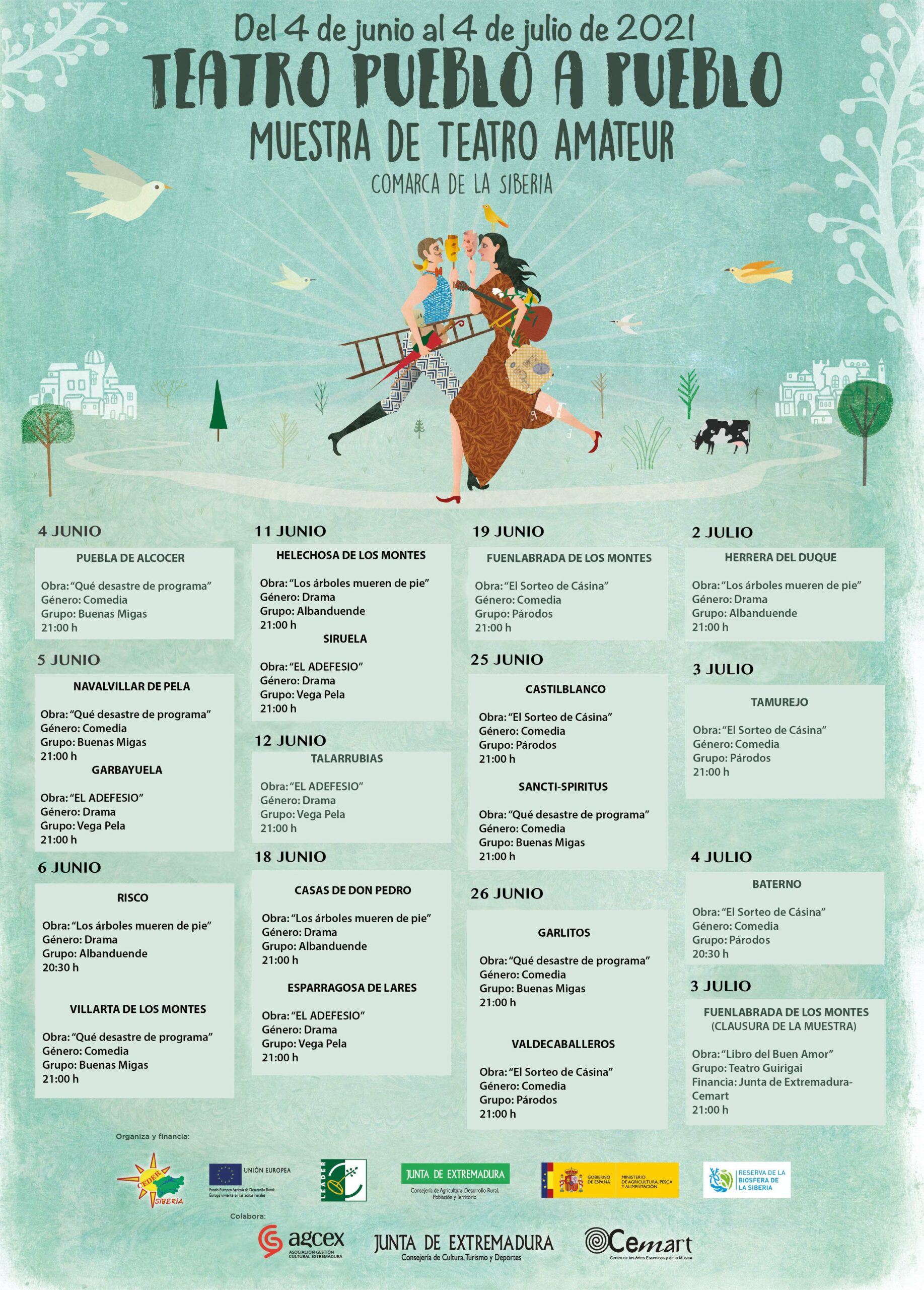 Desde el 4 de junio hasta el 4 de julio de 2021, el teatro recorrerá, pueblo a pueblo, las 18 localidades de la Comarca de la Siberia, acercando a la población rural la cultura y el entretenimiento que ofrece esta rama de las artes escénicas.
